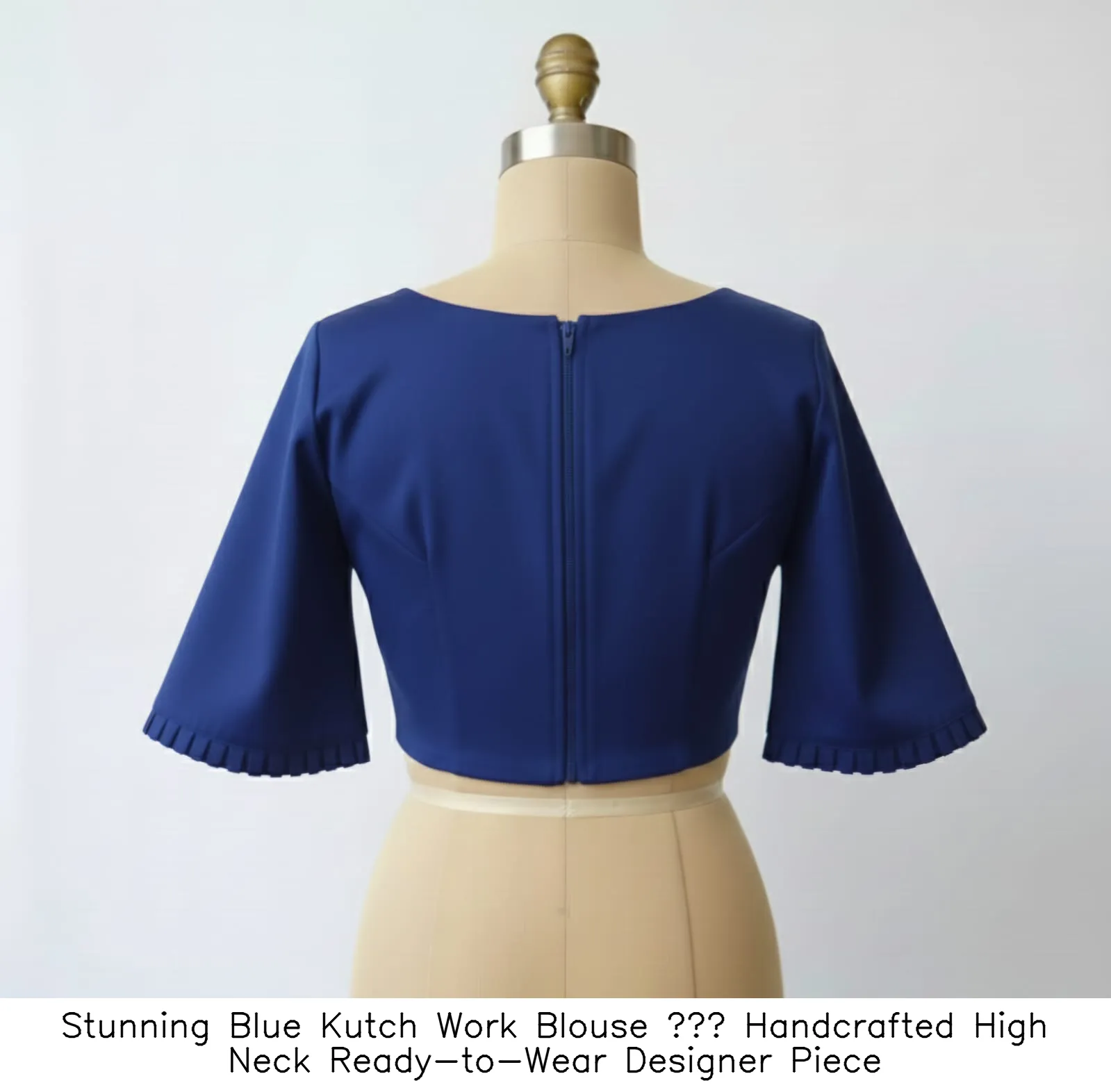 Product Name: Stunning Blue Kutch Work Blouse – Handcrafted High Neck Ready-to-Wear Designer Piece