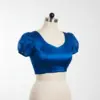 Product Name: Stunning Blue Puff Sleeve High Neck Saree Blouse Ready to Wear Elegance
