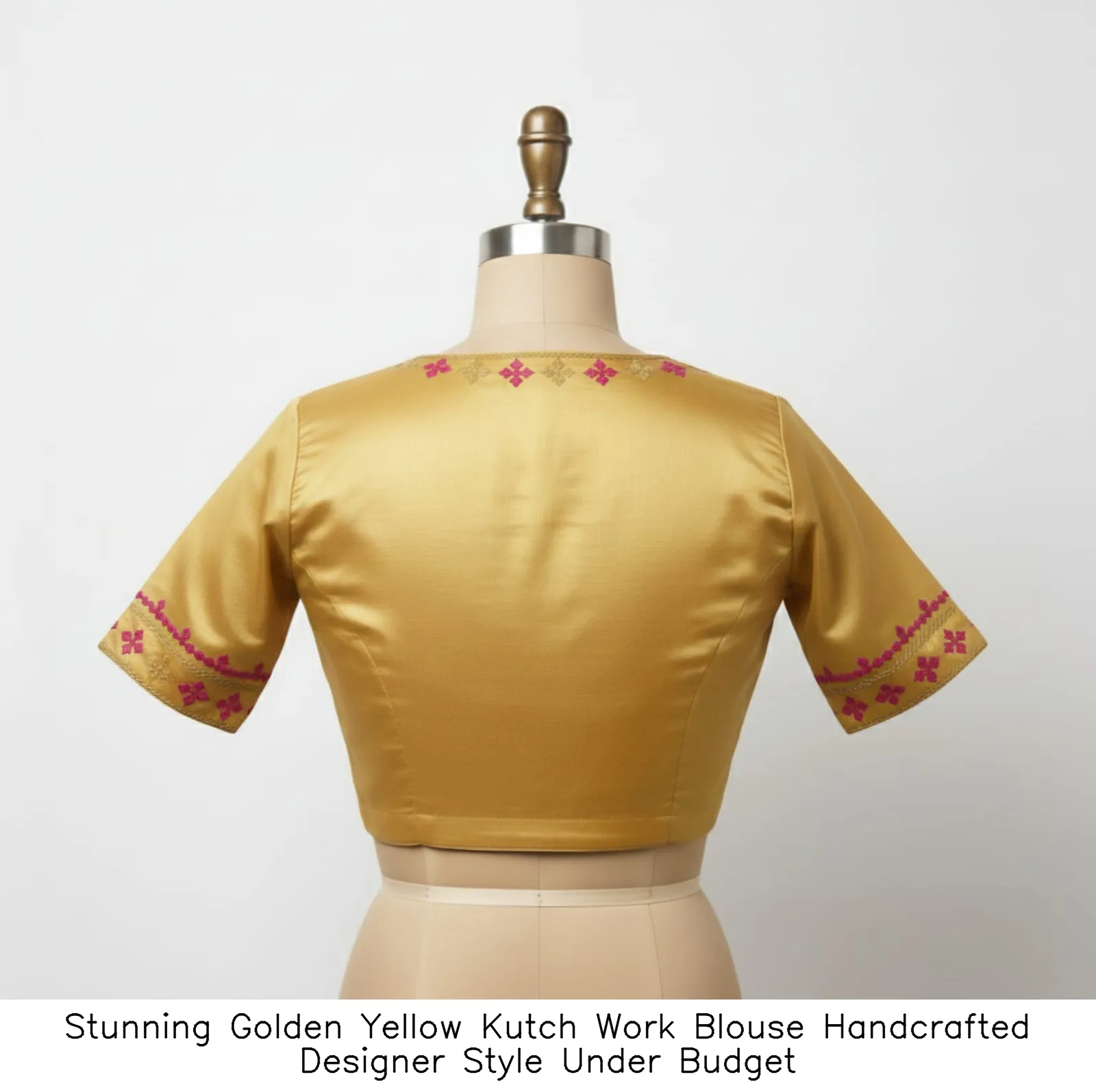Stunning Golden Yellow Kutch Work Blouse Handcrafted Designer Style Under Budget