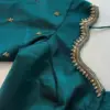 Product Name: Stunning Peacock Blue Aari Work Blouse – Handcrafted Maggam Work – Ready to Wear & Customizable