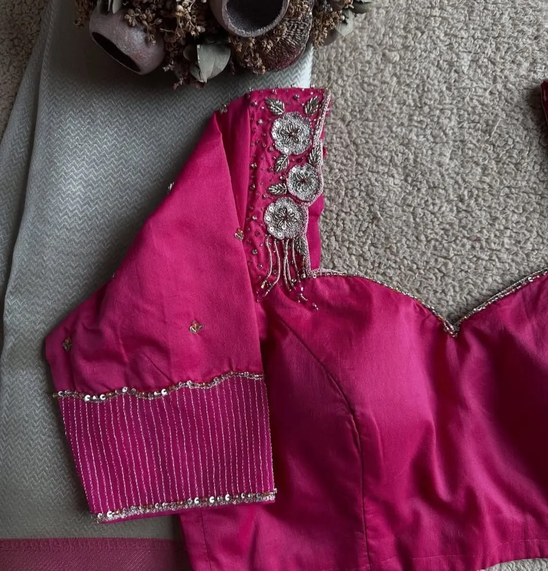 Product Name: Stunning Pink Silver Zardosi Maggam Work Blouse Under Budget Shop Trendy Bridal Wear Online
