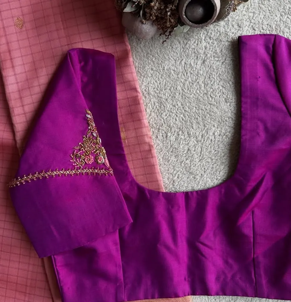 Stunning Purple Pink Handcrafted Maggam Work Blouse Designer Look Under Budget
