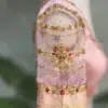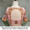 Product Name: Stylish Bridal Peach Silk Blouse – Thread & Kundan Work, Designer Back Neck, Perfect for Weddings & Parties