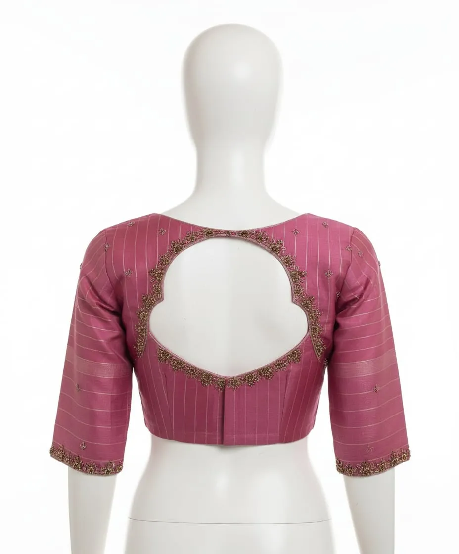 Product Name: Stylish Pink Budget Maggam Work Blouse Handcrafted Design Perfect Custom Fit Price Per Pc: 2100 INR Fabric Details: Raw Silk Half pattu Size: Xl, XXL, 3XL Colors: Red, Pink,Blue ,Purple, wine ,