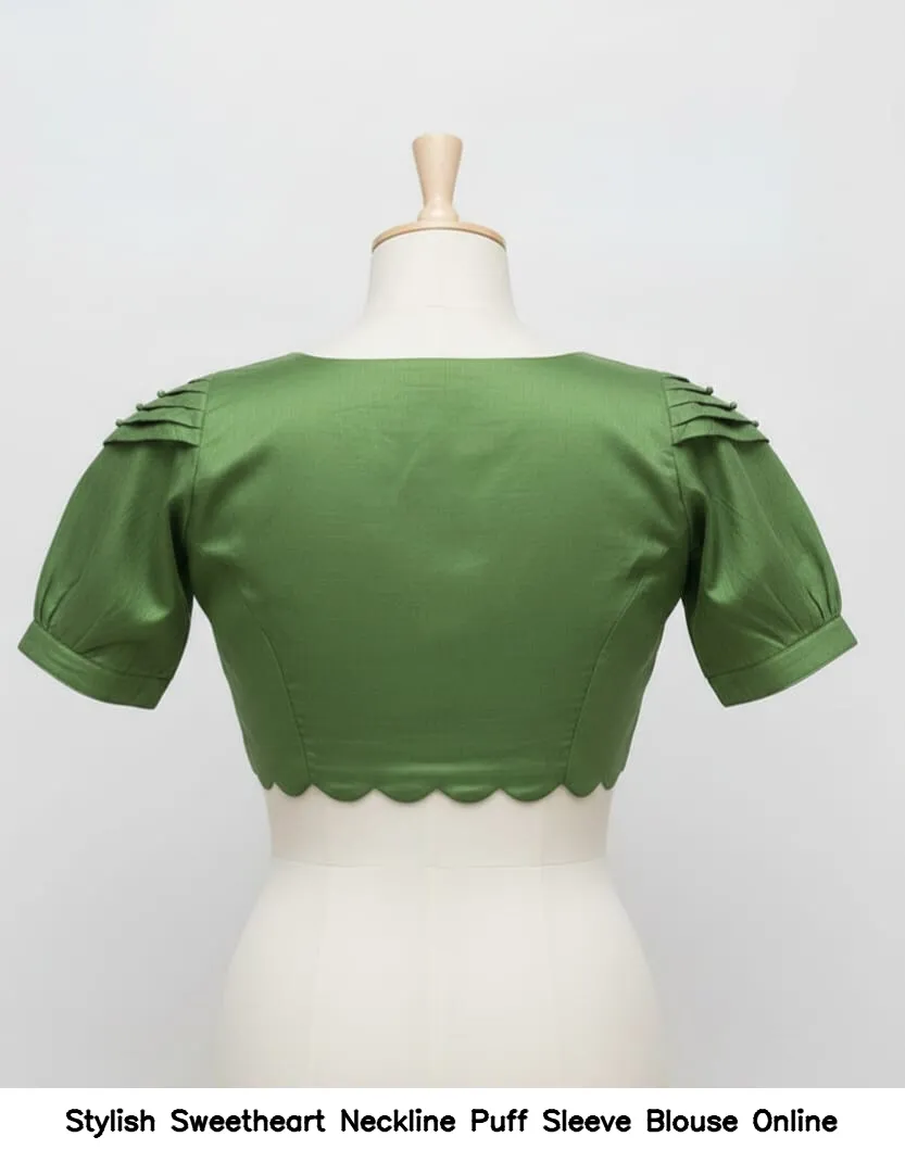 Stylish Sweetheart Neckline Puff Sleeve Blouse Online is the perfect choice for fashion enthusiasts. Moreover, it enhances your wardrobe with elegance and flair. This designer blouse is not only stylish but also versatile, making it suitable for various occasions.