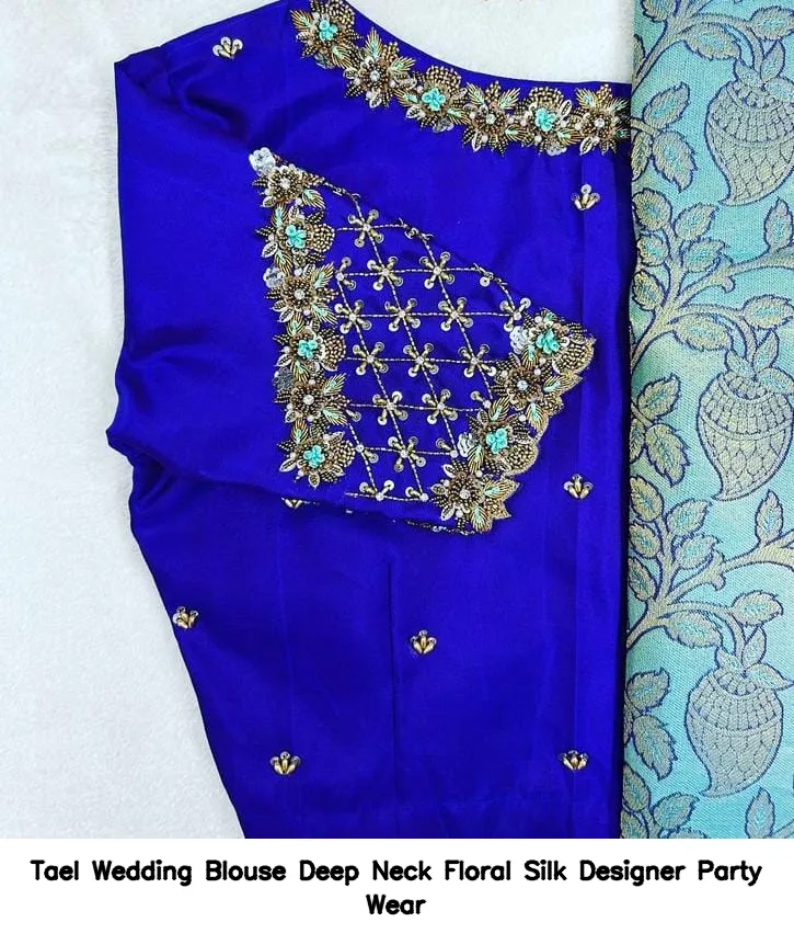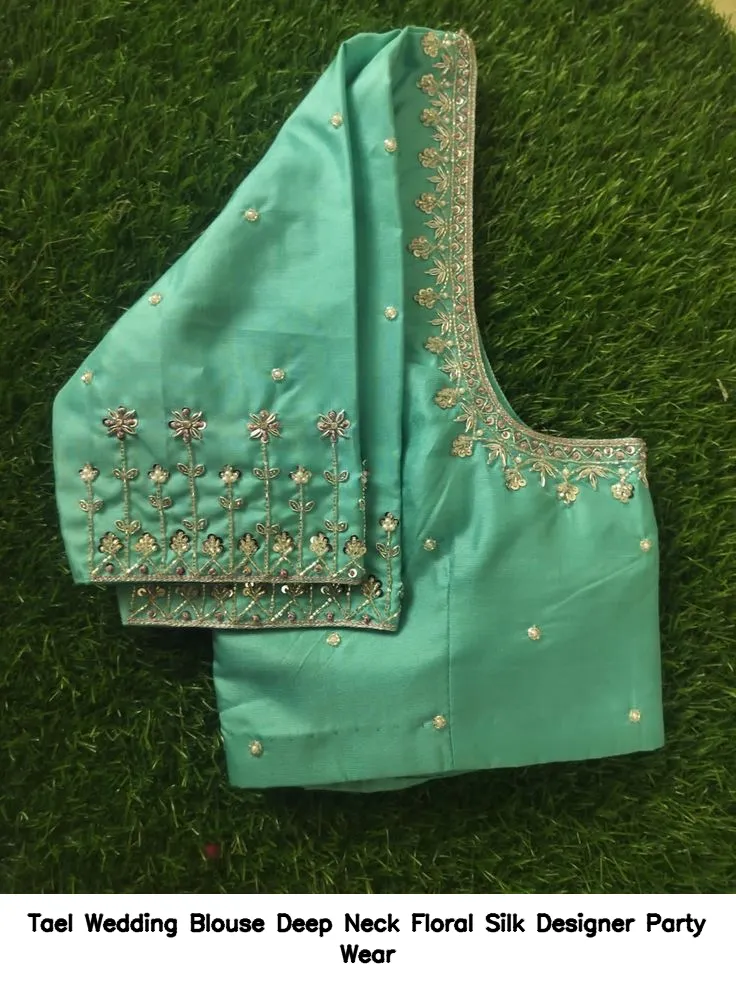 Tael Wedding Blouse – Deep Neck Floral Silk Designer Party Wear