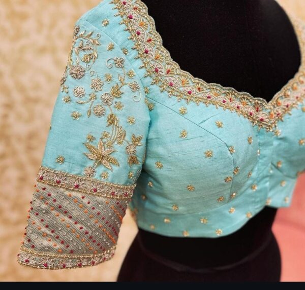 - Designed for Comfort and Style: Crafted to ensure you look and feel your best, Teal Elegance – Zardosi Embellished Blouse even through long celebrations.