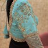 The richness of Zardosi embroidery makes this Teal Elegance – Zardosi Embellished Blouseideal for weddings, receptions, and other grand celebrations.