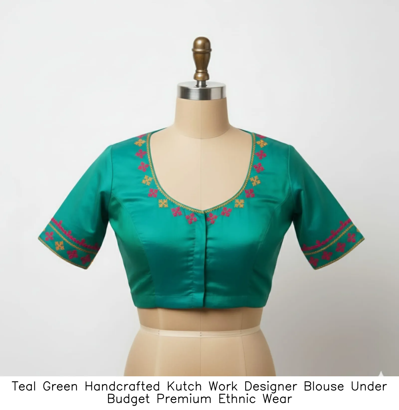 Product Name: Teal Green Handcrafted Kutch Work Designer Blouse Under Budget Premium Ethnic Wear