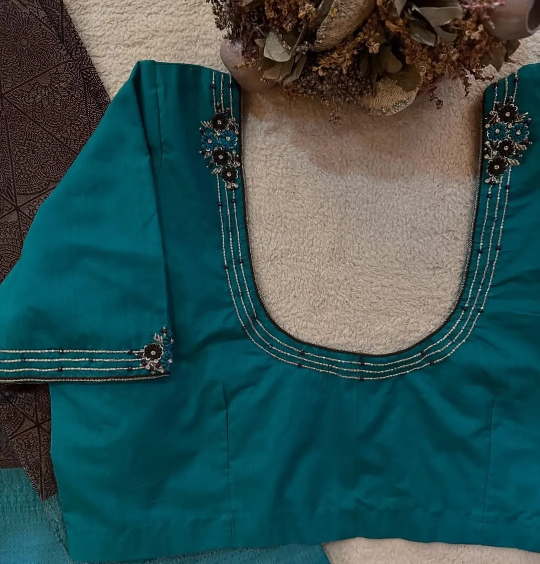 Teal Handcrafted Maggam Work Blouse Elegant Designer Style Under Budget is perfect for the fashion-conscious. Moreover, it combines elegance and affordability effortlessly. You can showcase your unique style without breaking the bank. With this blouse, you can elevate your ethnic wardrobe significantly.