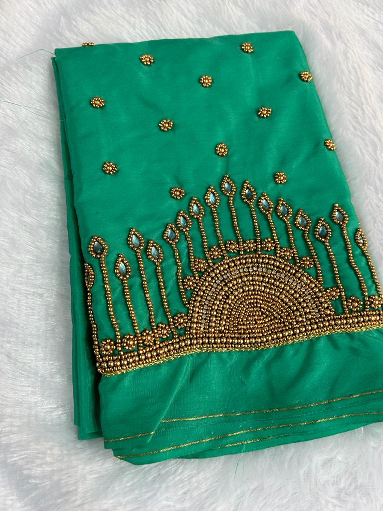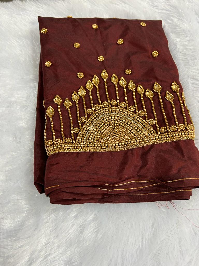 Stunning Raw Silk blouse. Crafted for wedding and festive wear, pairs beautifully with silk sarees and lehengas.
