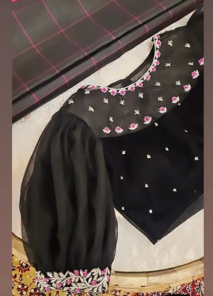 Product Name: Timeless Charm: Black Puff Sleeves Boat Neck Blouse for Elegant Evenings