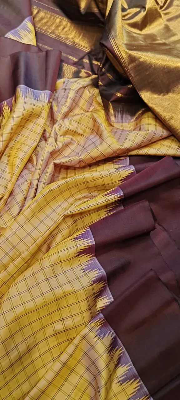 Elegance Pure Gadwal Silk Saree with Rich Zari Border – Royal Heritage Weave adds charm to your wardrobe. Follow us on social media for the latest updates and styles. Follow us on Facebook to stay connected!