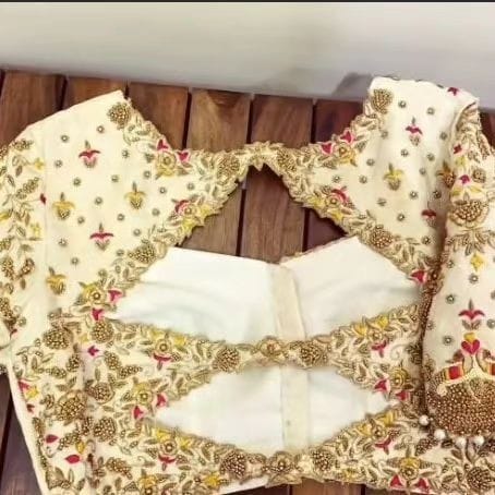Pair this timeless blouse with a rich Kanjeevaram saree, vintage gold jewelry, and a classic bridal bun adorned with jasmine flowers.