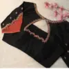 Product Name: Trending Aari Work Back Neck Blouse Design in Black Silk | Hand-Embroidered Ethnic Blouse for Sarees & Lehengas