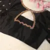 Product Name: Trending Aari Work Back Neck Blouse Design in Black Silk | Hand-Embroidered Ethnic Blouse for Sarees & Lehengas