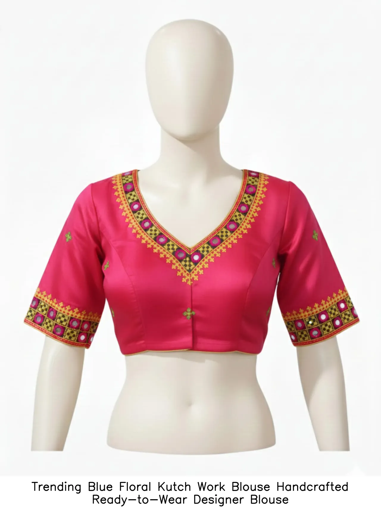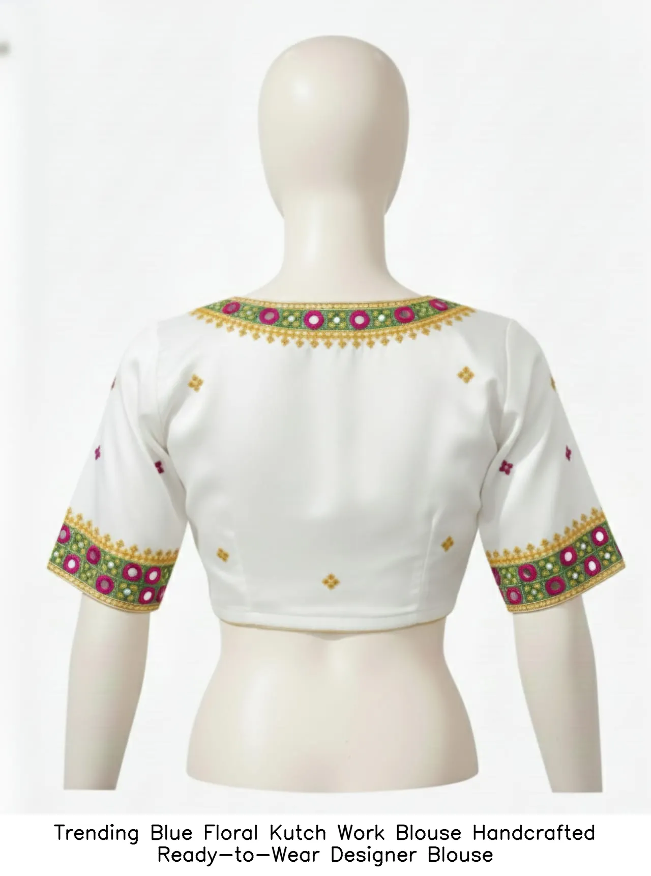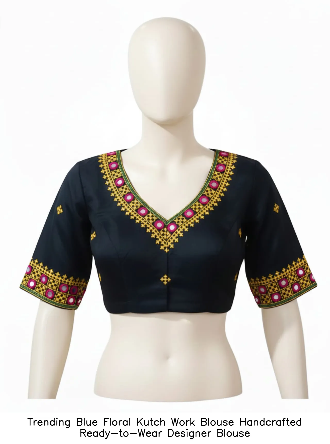 Trending Blue Floral Kutch Work Blouse Handcrafted Ready-to-Wear Designer Blouse is perfect for any occasion. This exquisite piece combines elegance and comfort. Additionally, it features unique handcrafted designs that make you stand out. With its vibrant floral patterns, you will turn heads wherever you go.