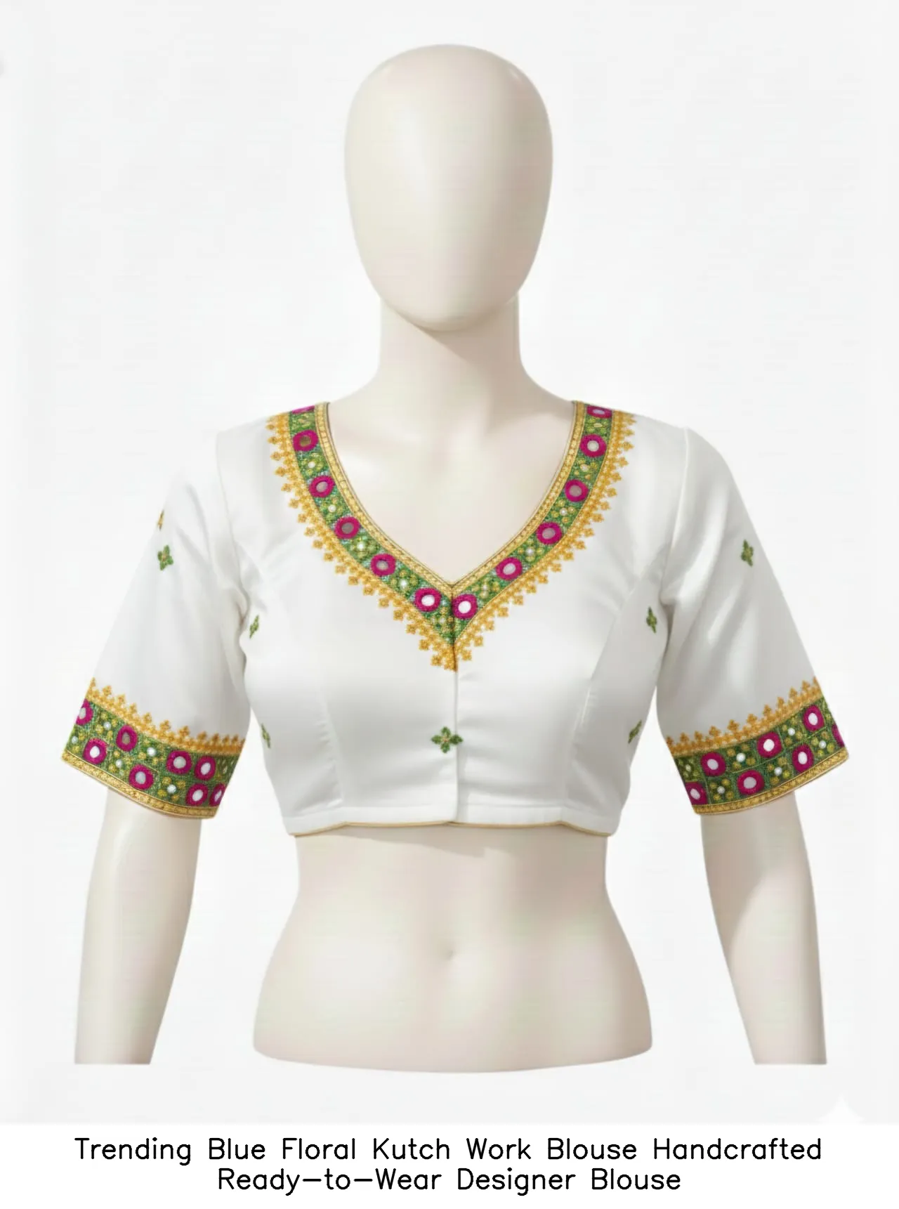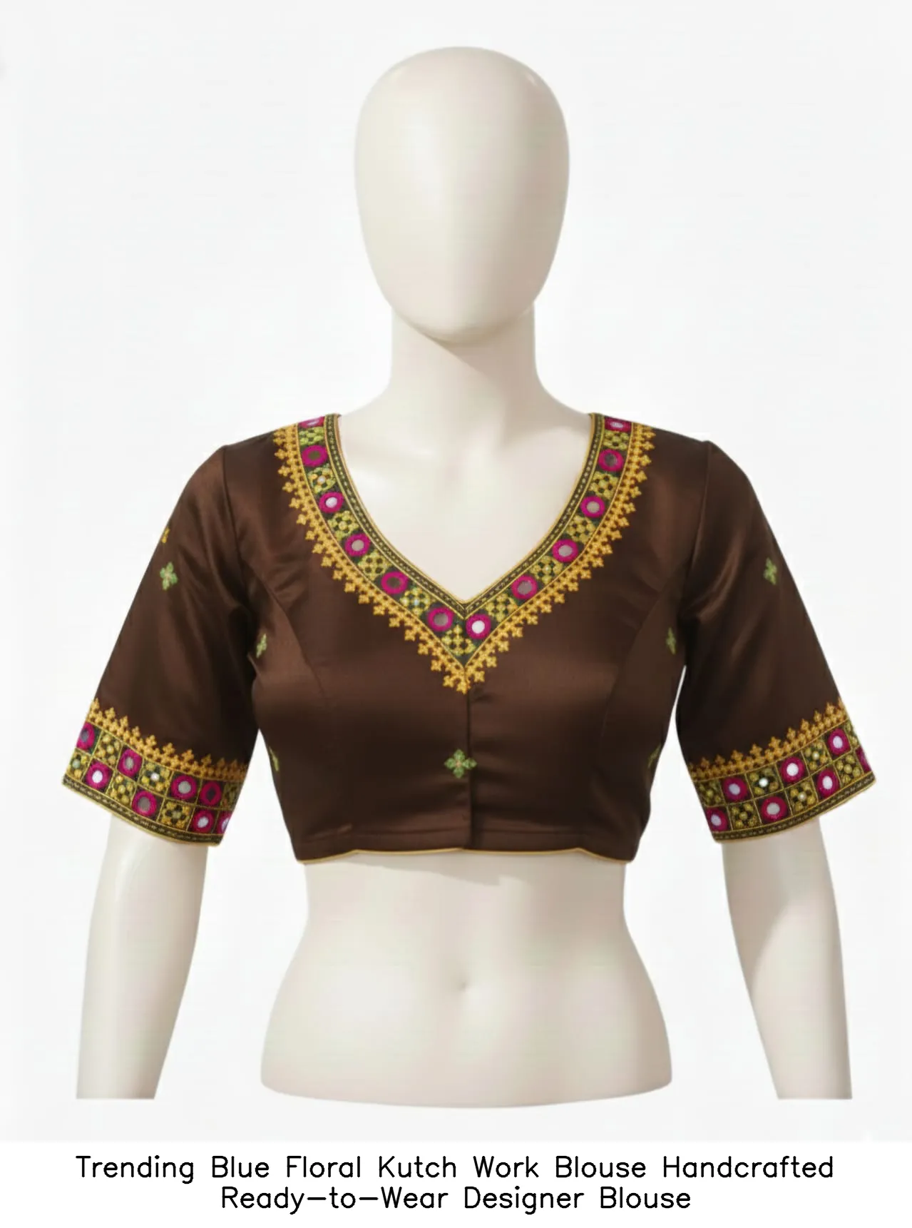 Why Choose Trending Blue Floral Kutch Work Blouse Handcrafted Ready-to-Wear Designer Blouse?