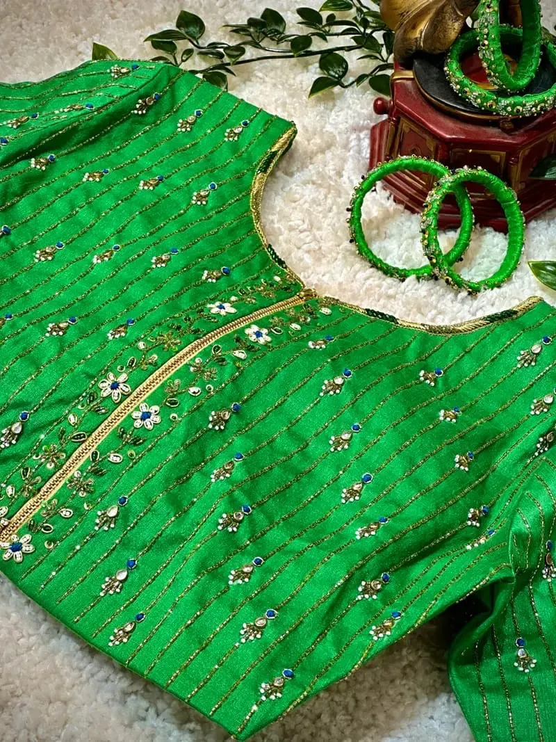 Why Choose Trending Green Maggam Work Blouse Design Handcrafted Bridal Wear?