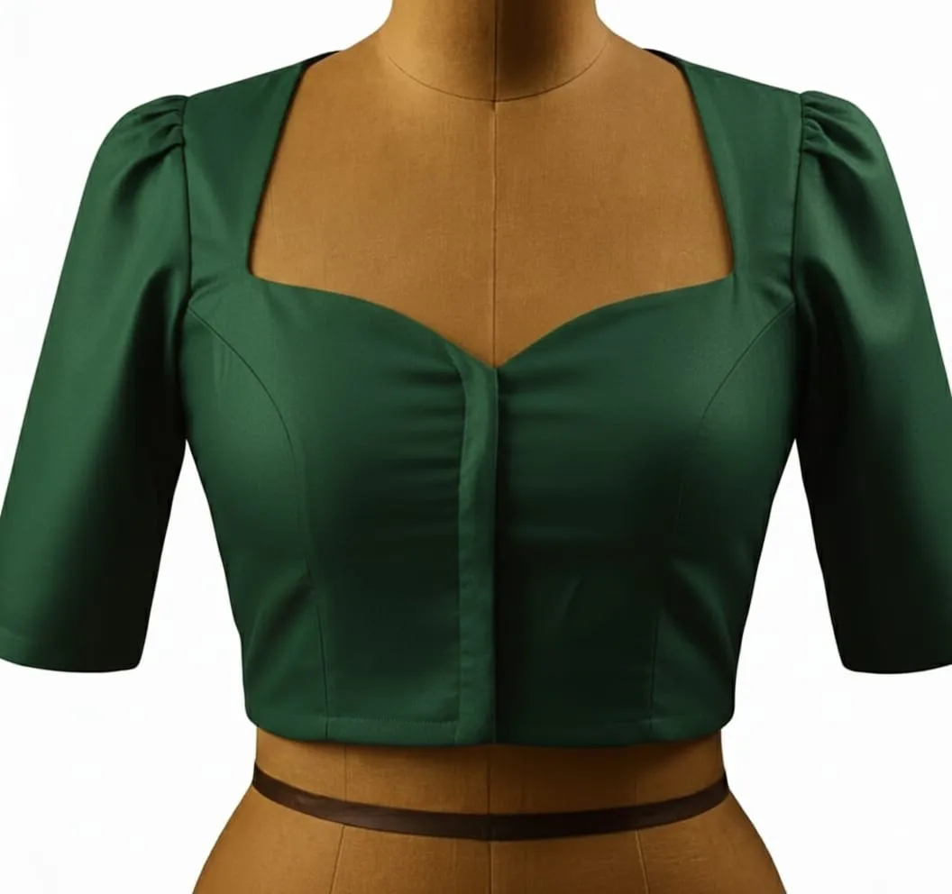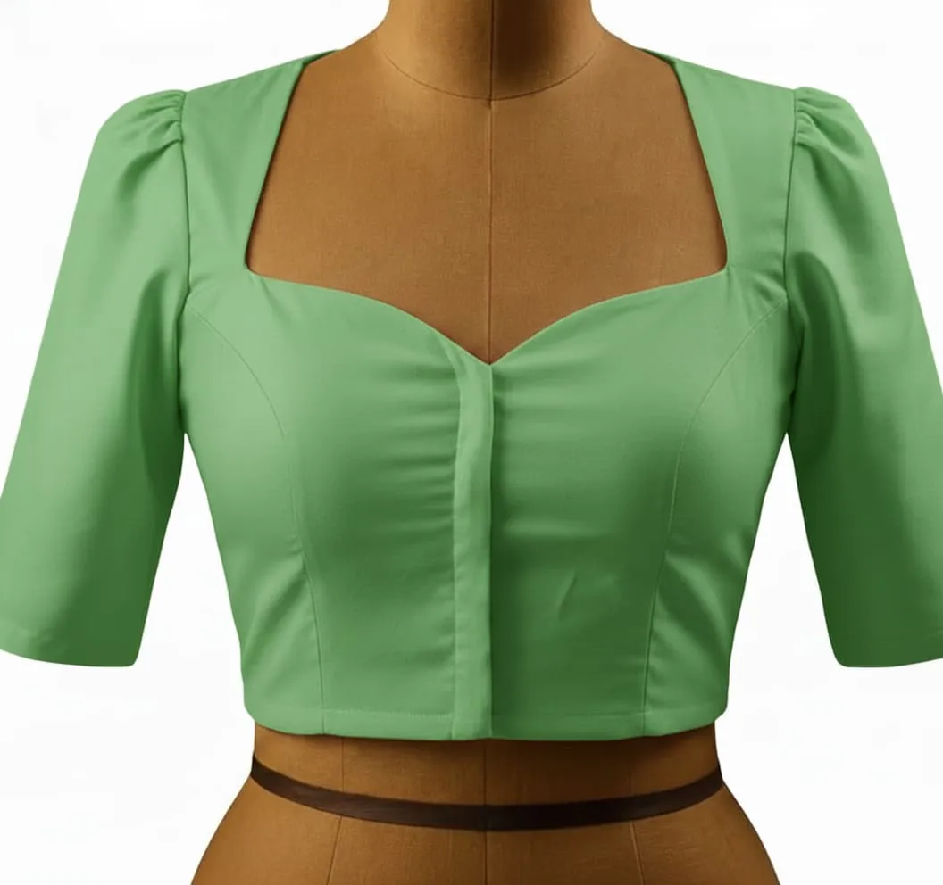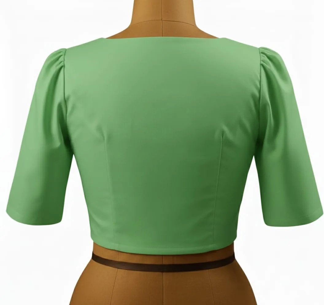 Product Name: Trending Green Puff Sleeve Blouse Sweetheart Neck Fancy Ready Made Ethnic Wear