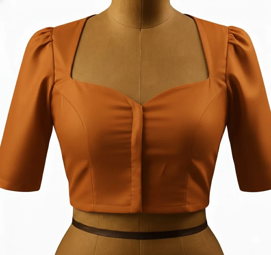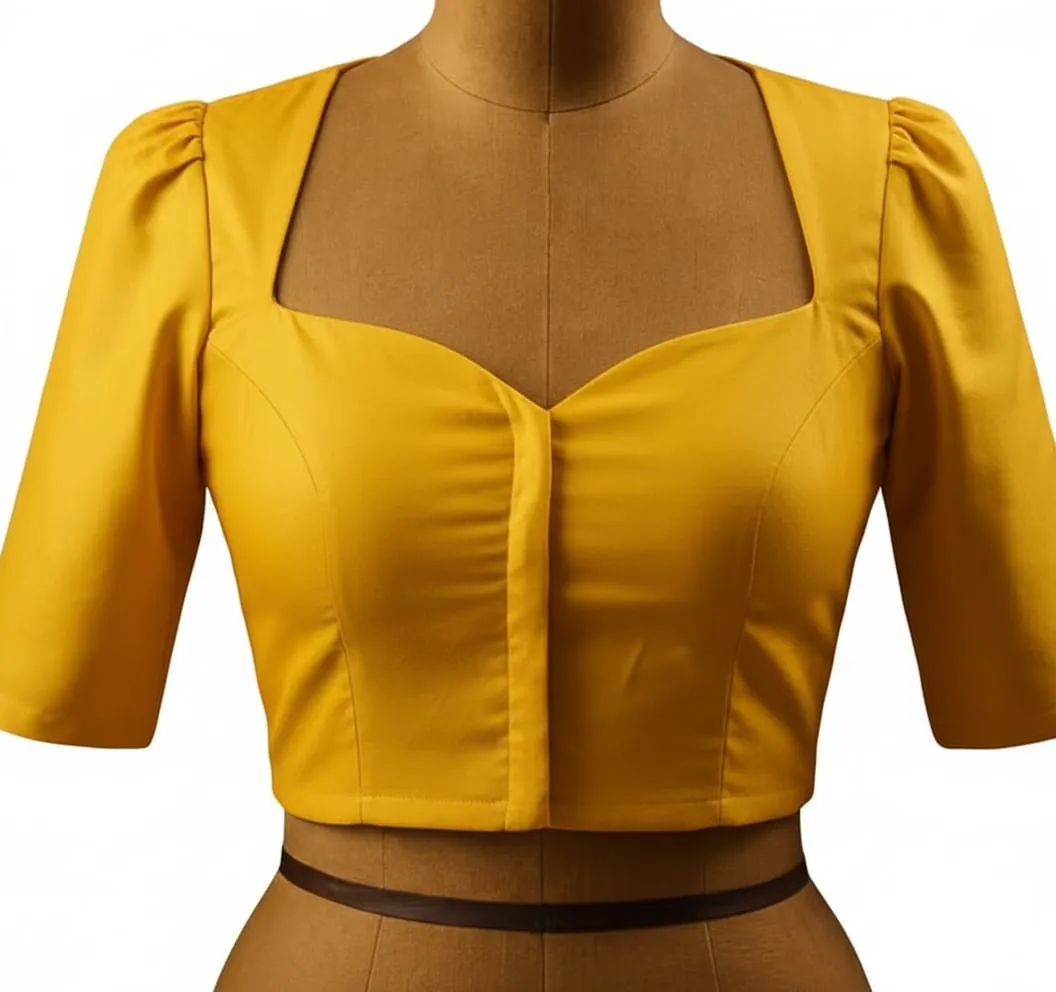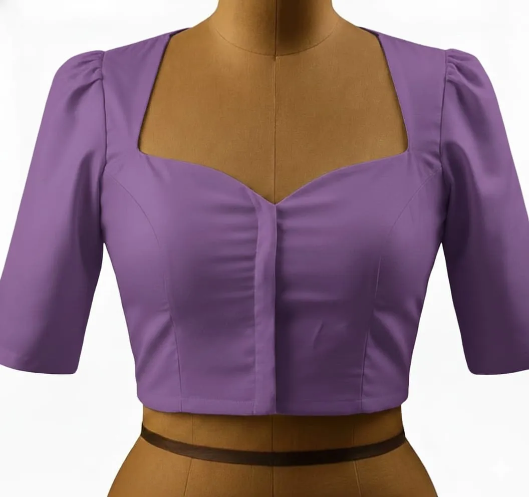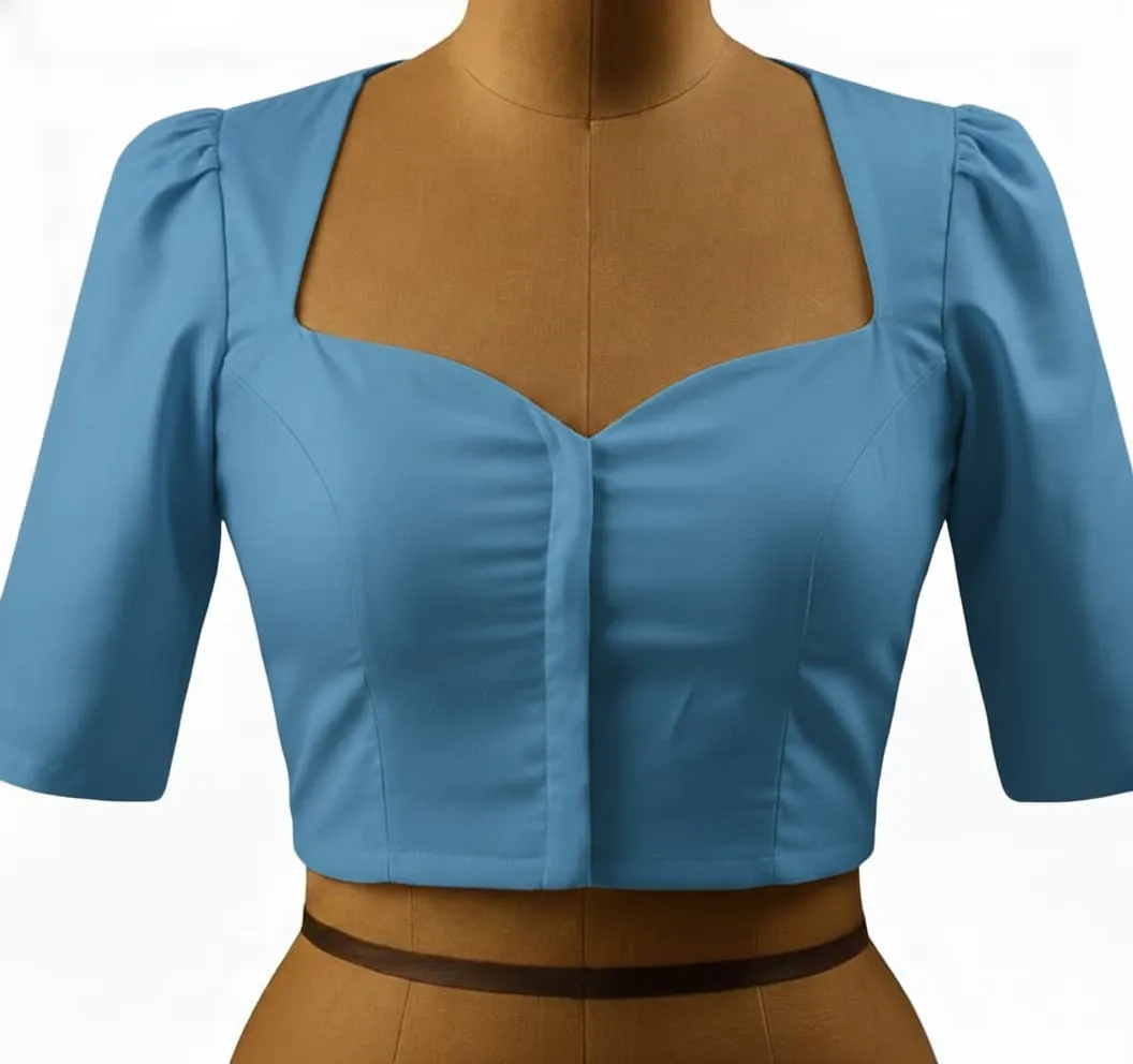 Product Name: Trending Green Puff Sleeve Blouse Sweetheart Neck Fancy Ready Made Ethnic Wear