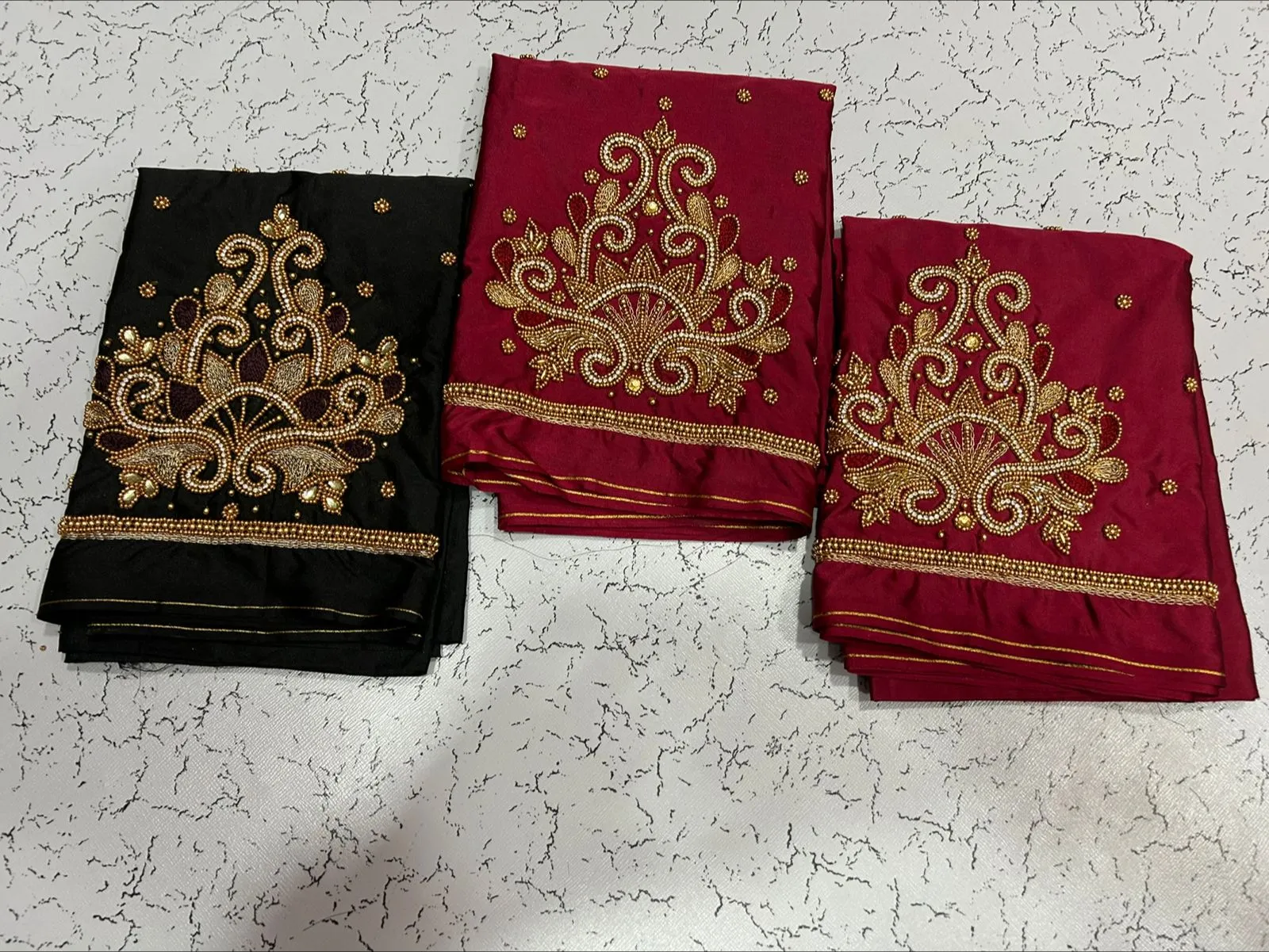 A: We use high-quality fabrics that ensure comfort and durability. Enjoy the elegant look and feel of our Aari beads work while maintaining excellent quality.