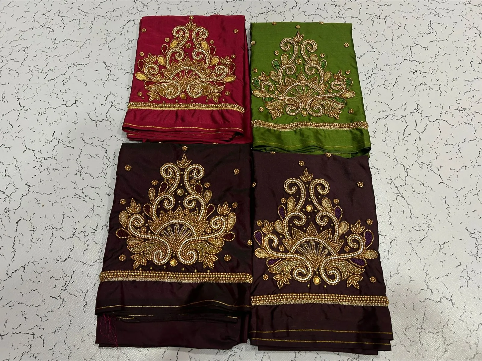 Now – Latest Aari Beads Work Blouse at Special Offer! This blouse combines elegance and style for any occasion. Moreover, the exquisite Aari beadwork enhances your outfit, making it standout. You will love the comfort and quality of this blouse, designed for a perfect fit.
