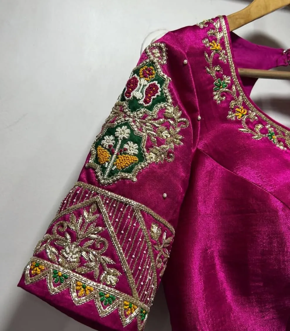 Why Choose Trending Pink Velvet Bridal Raw Silk Blouse Heavy Maggam Work Wedding Designer?