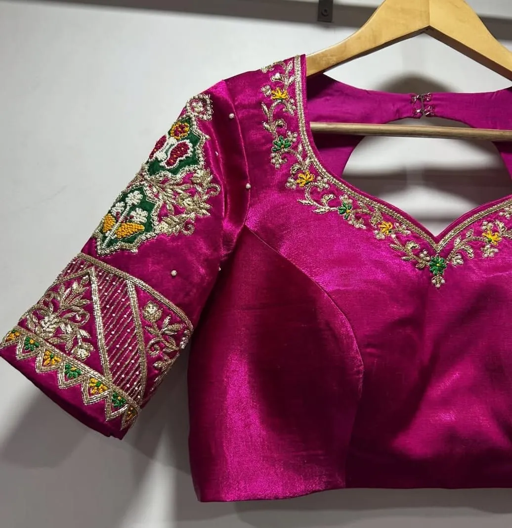 Trending Pink Velvet Bridal Raw Silk Blouse Heavy Maggam Work Wedding Designer Features and Benefits