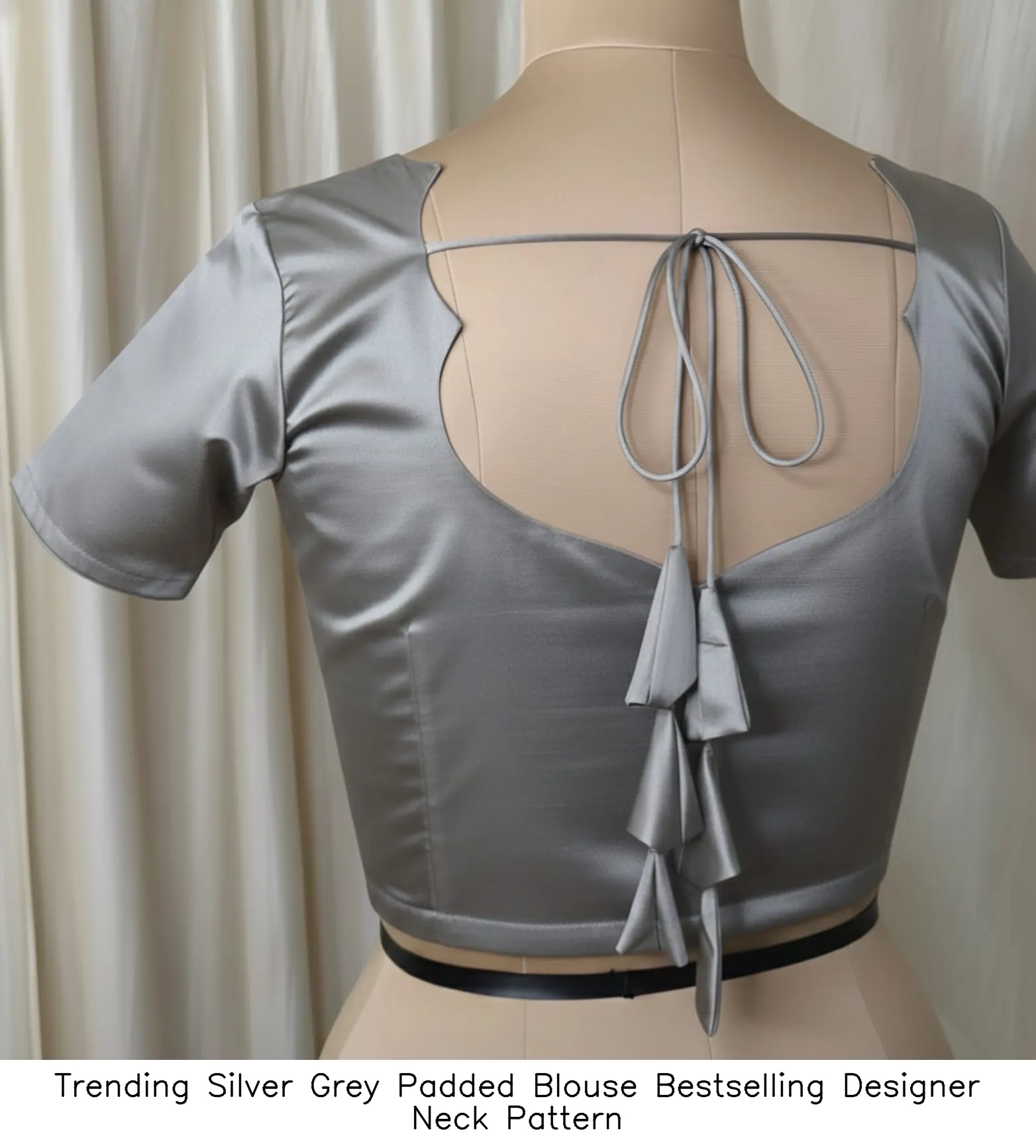 Product Name: Trending Silver Grey Padded Blouse Bestselling Designer Neck Pattern