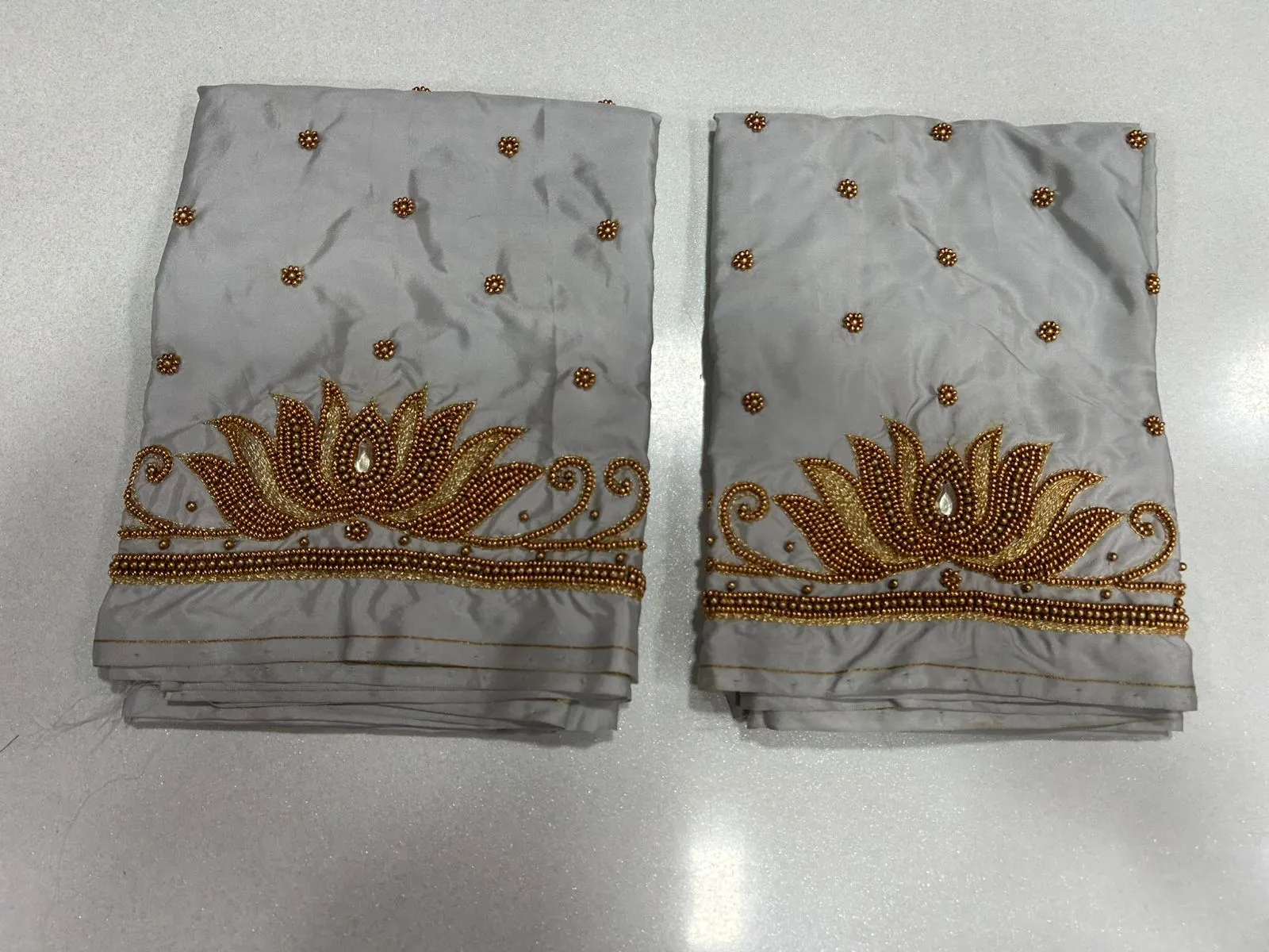 Q: What is the material quality of the Lotus Buti Maggam Work Blouse Stunning Budget-Friendly Designer Style?