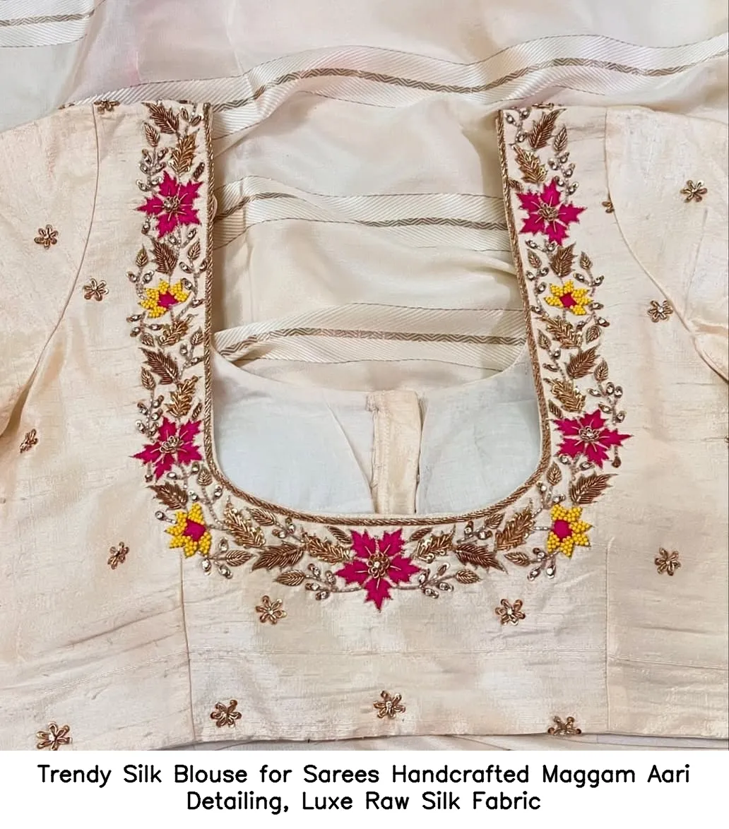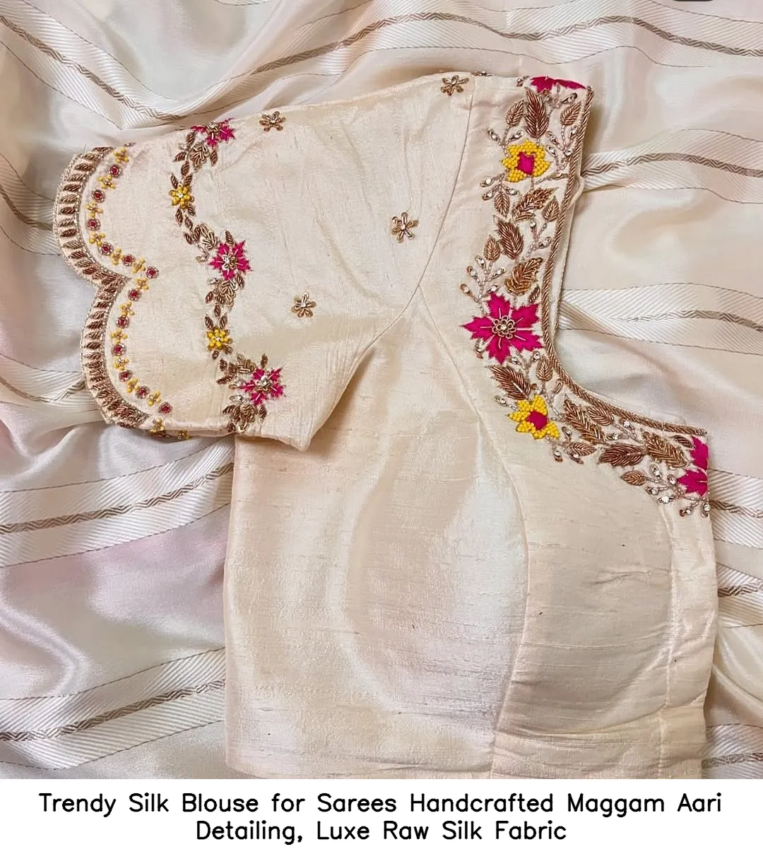Trendy Silk Blouse for Sarees – Handcrafted Maggam Aari Detailing, Luxe Raw Silk Fabric