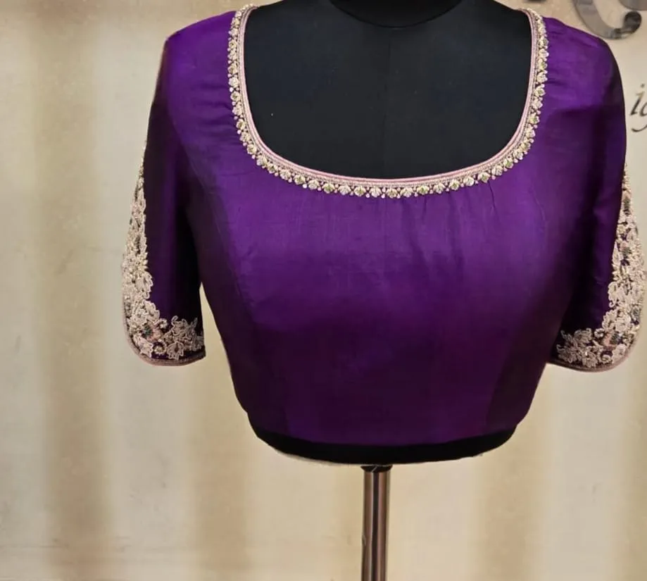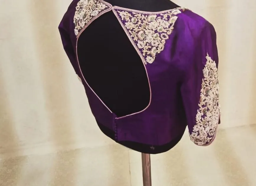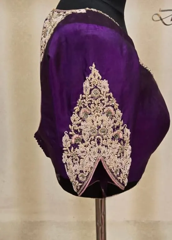 Product Name: Unrivaled Deep Purple High Neck Blouse Trending Maggam Work Silk Design