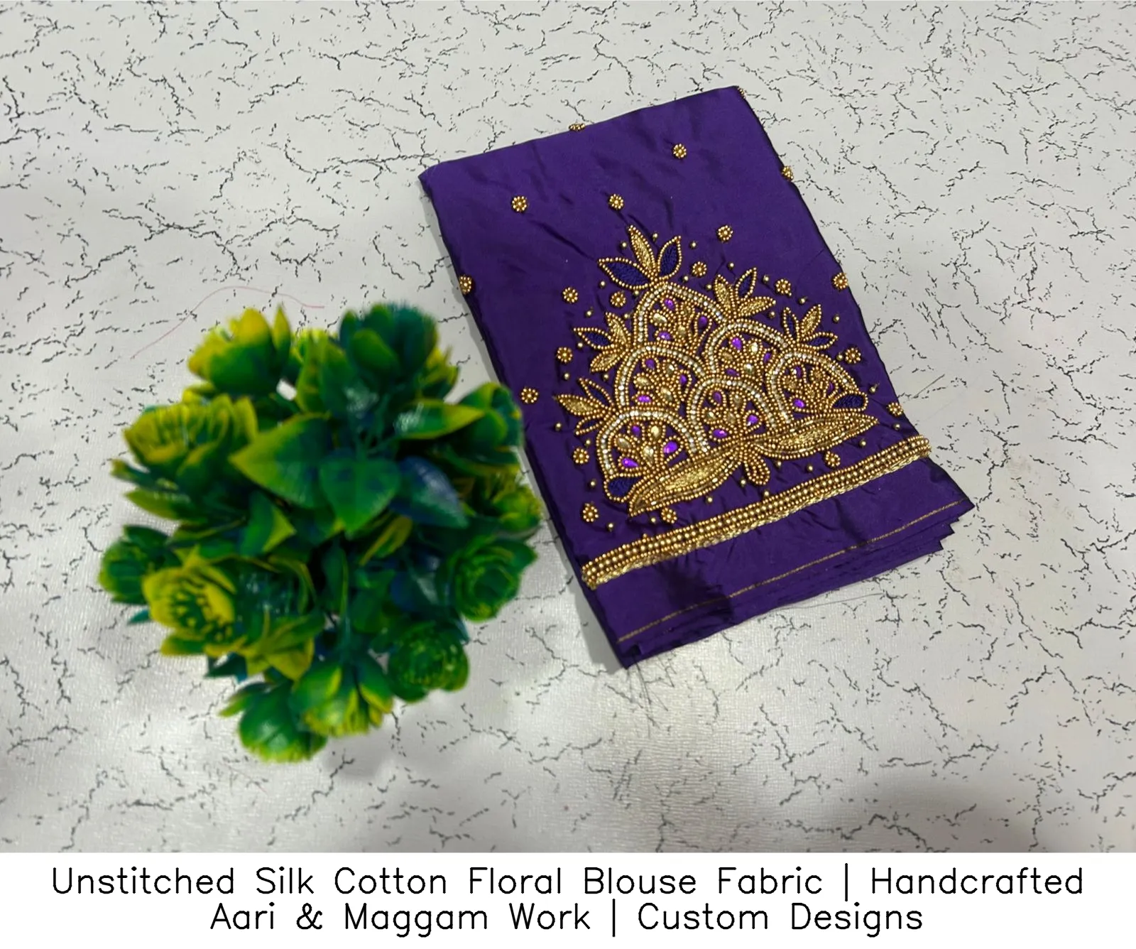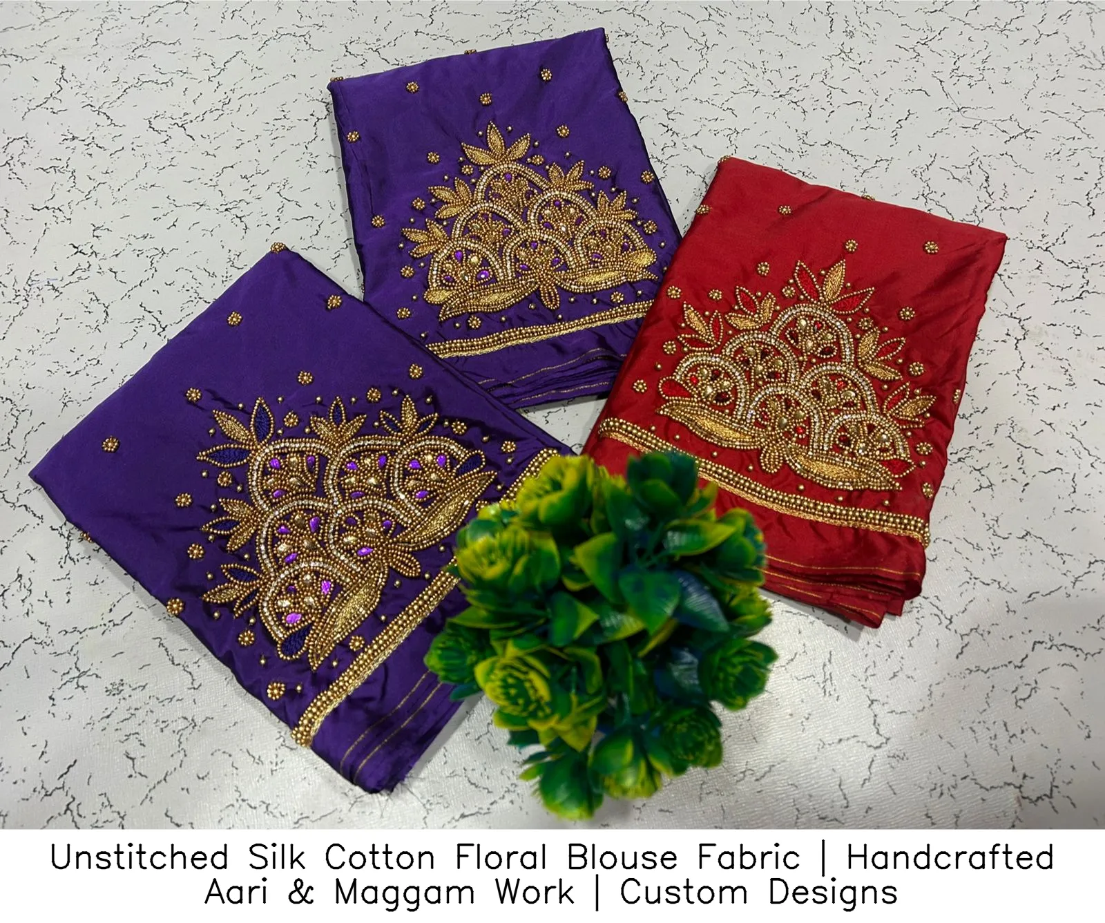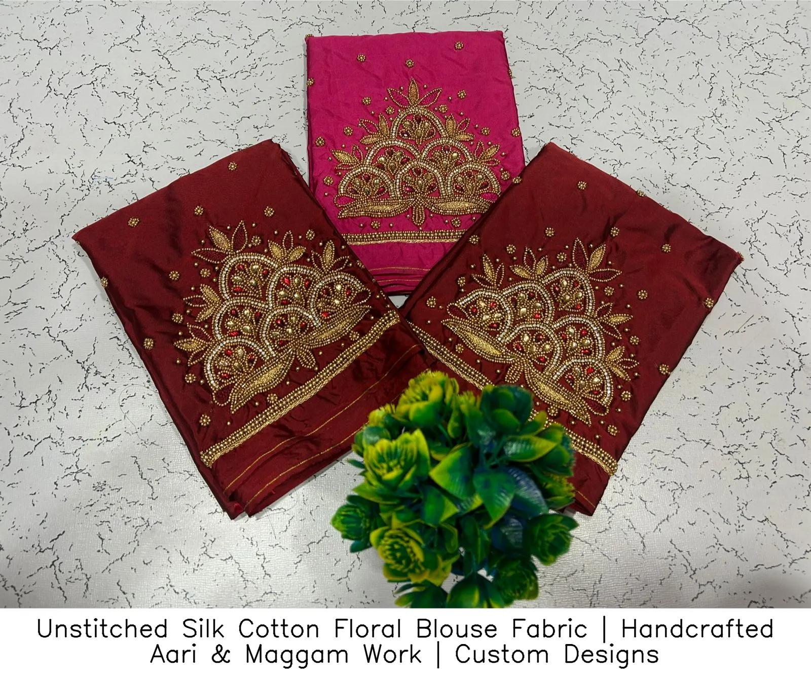 Product Name: Unstitched Silk Cotton Floral Blouse Fabric | Handcrafted Aari & Maggam Work | Custom Designs