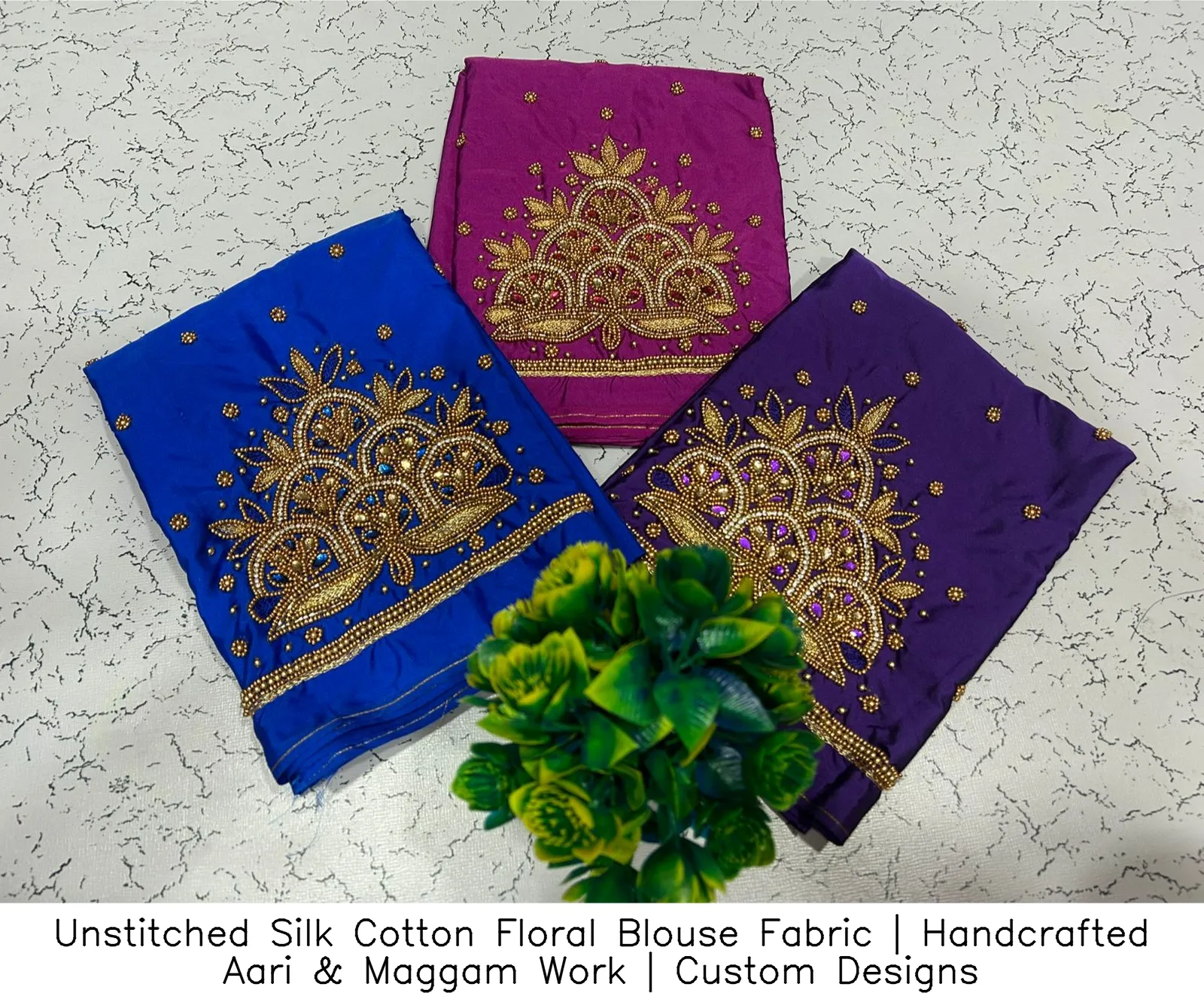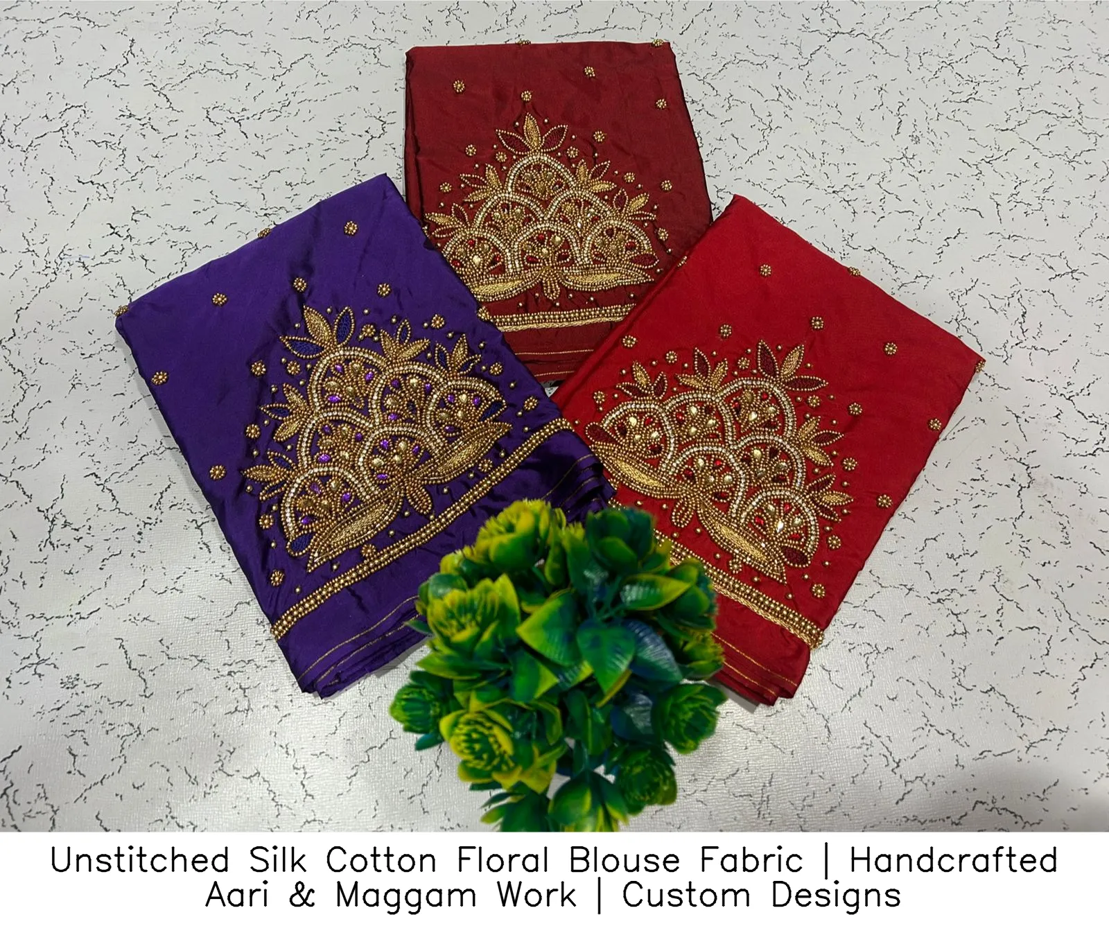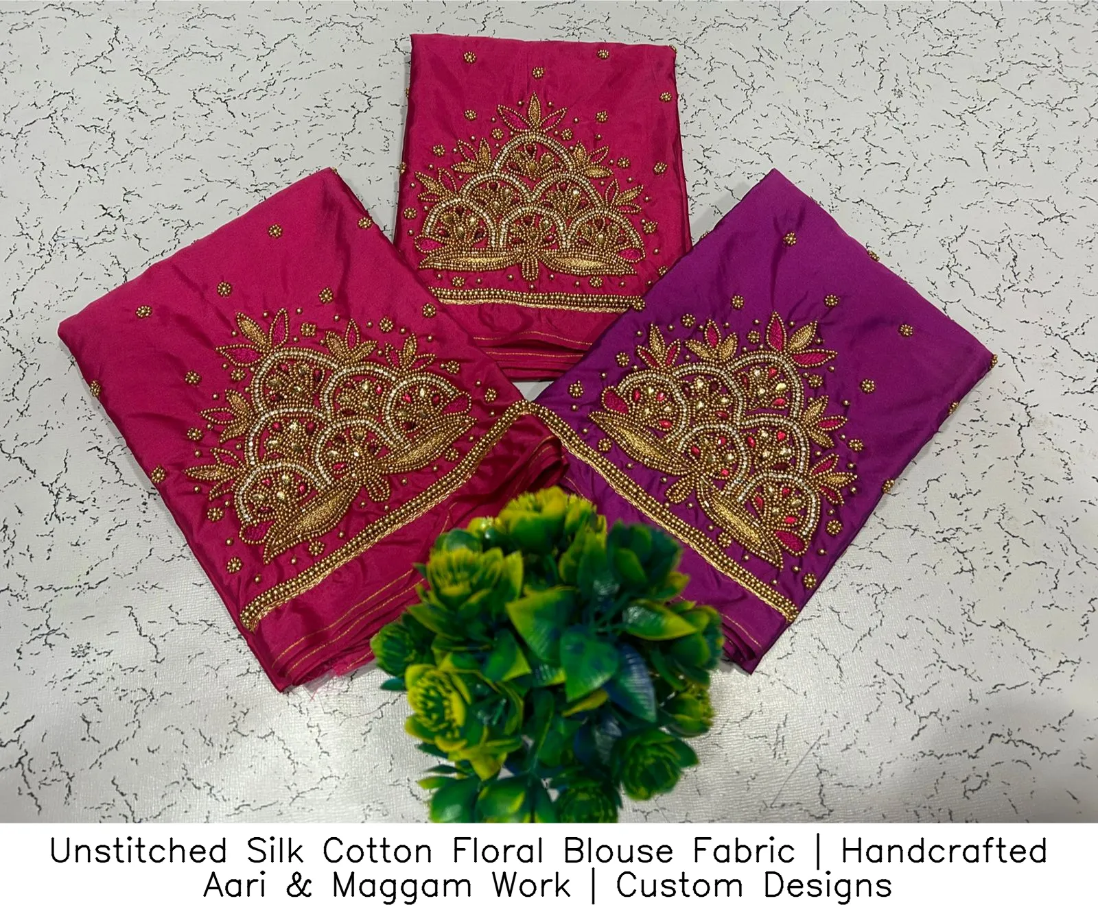 Product Name: Unstitched Silk Cotton Floral Blouse Fabric | Handcrafted Aari & Maggam Work | Custom Designs