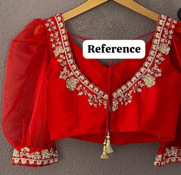 - Artisanal Craftsmanship: The intricate Maggam embroidery showcases traditional craftsmanship, making the blouse a wearable work of art.