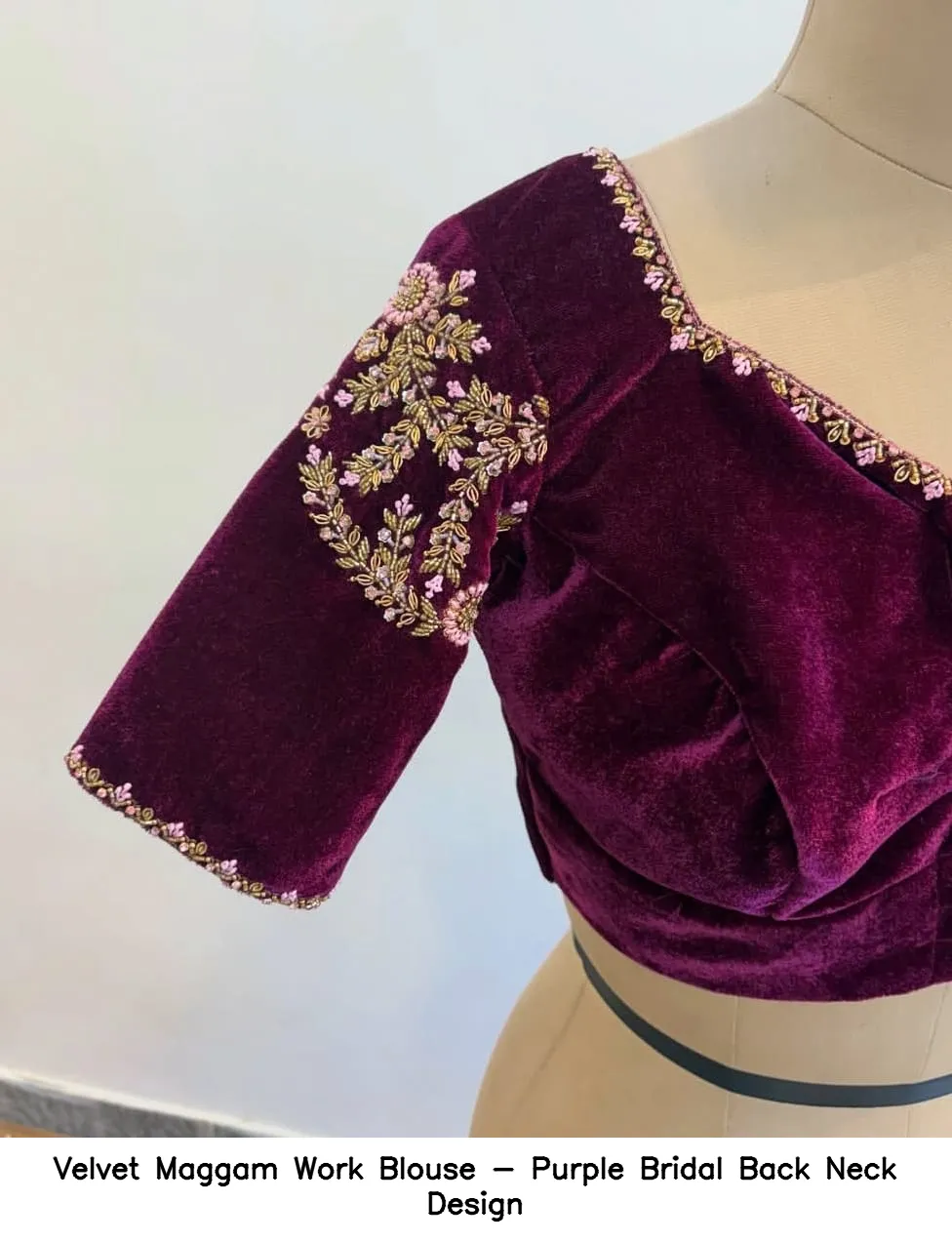 ​​​​Velvet Maggam Work Blouse – Purple Bridal Back Neck Design