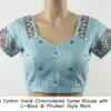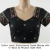 White Cotton Hand-Embroidered Saree Blouse with Deep U-Back & Phulkari Style Work