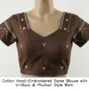Product Name: White Cotton Hand-Embroidered Saree Blouse with Deep U-Back & Phulkari Style Work