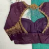 Product Name: Wine Raw Silk Designer Blouse – Grand Boat Neck Zardosi Maggam Work | Wedding Special