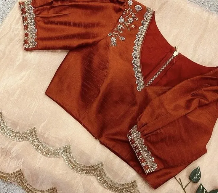 Product Name: Bridal Brick Red High Neck Blouse Latest Maggam Work, Best Price & Tailored Fit