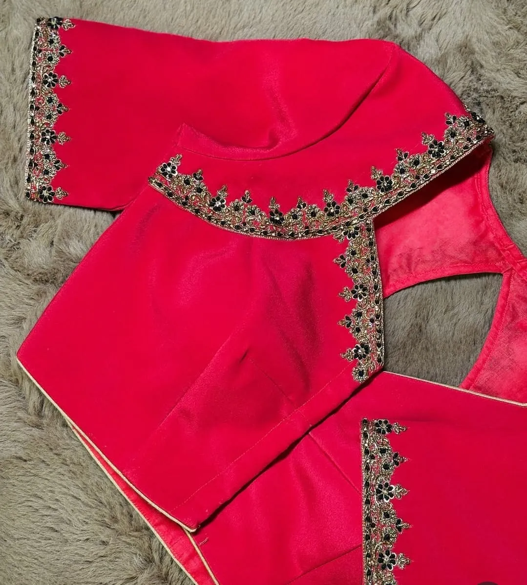Why Choose Rani Pink Bridal Zardosi Blouse Premium Maggam Work, Tailored to Your Size?