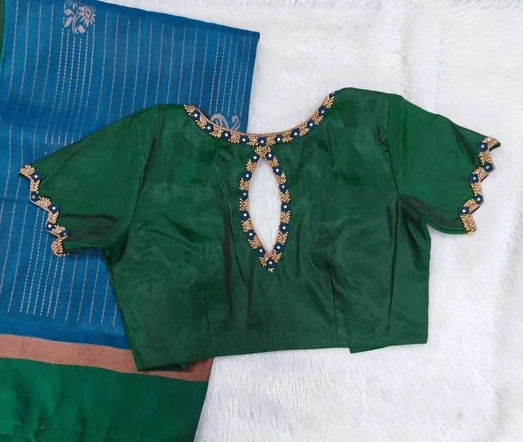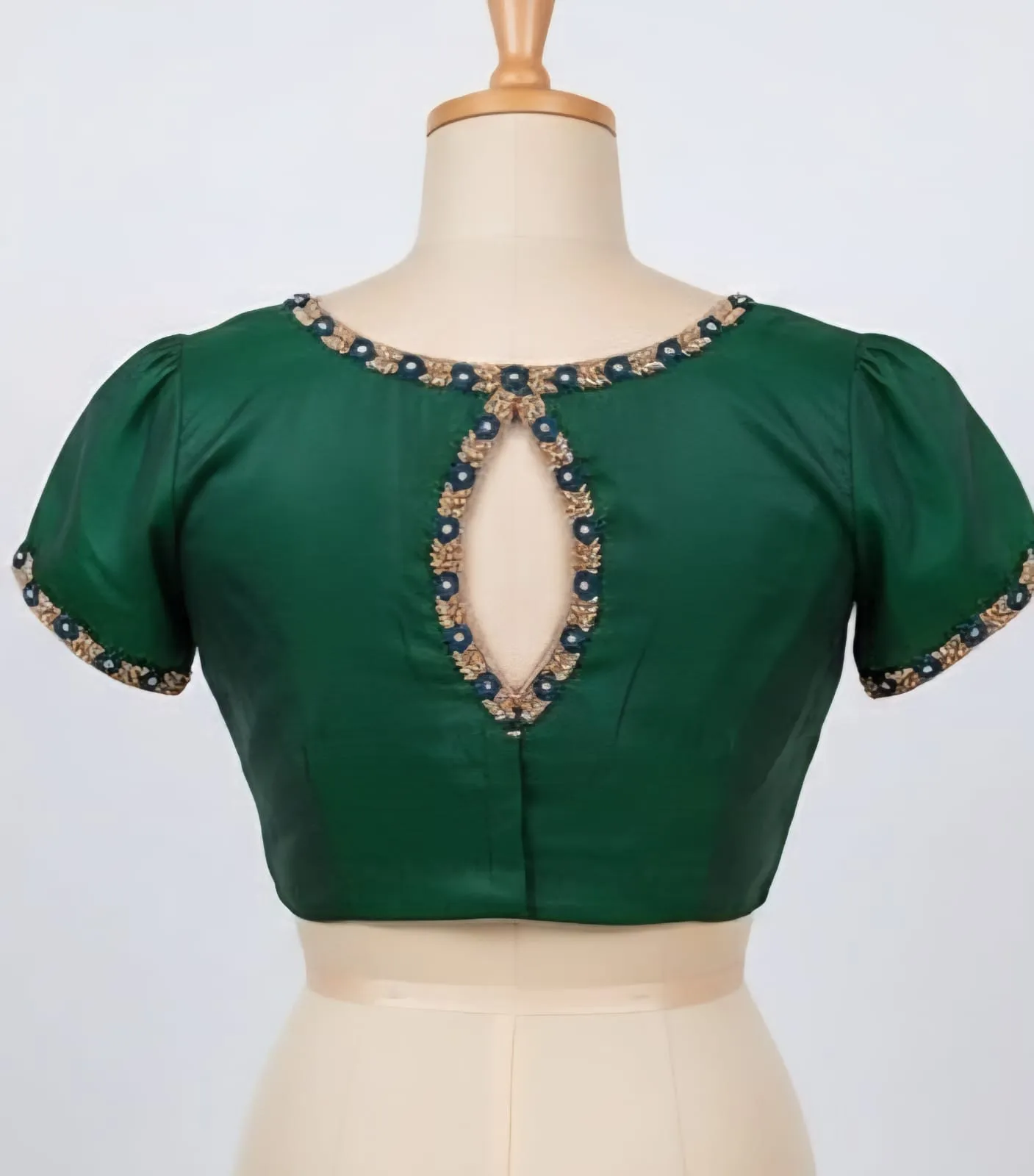 Product Name: Luxury Bottle Green Maggam Work Blouse Short Sleeves Custom Sizes at Best Price