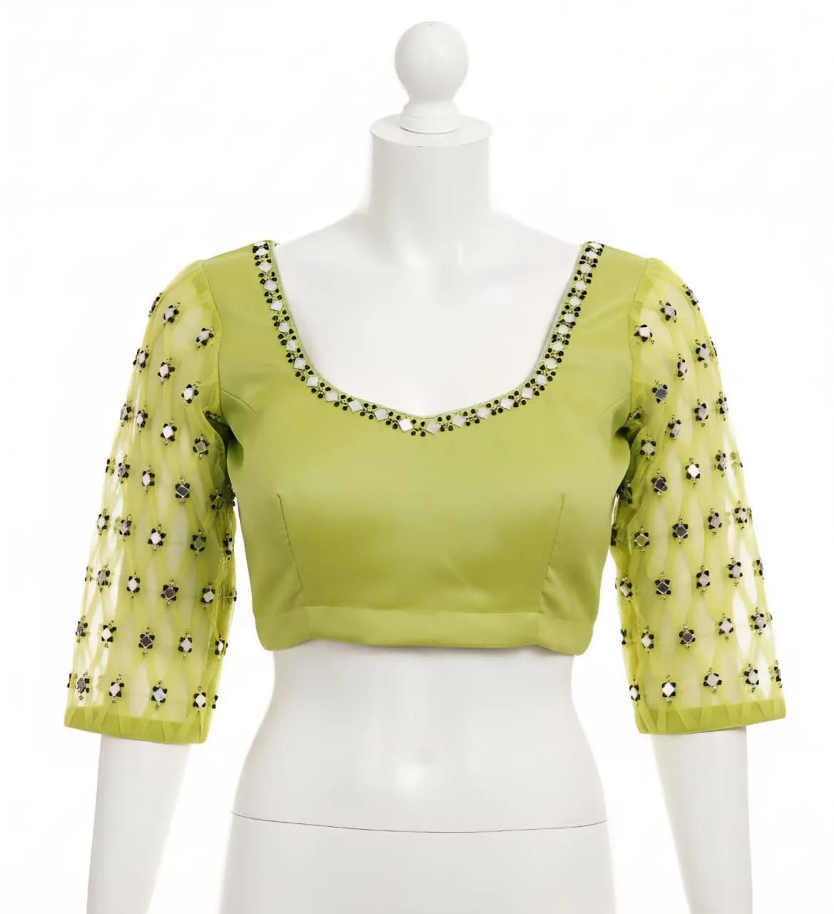 Product Name: Luxury Pista Green Checks Maggam Work Blouse Designer Handcrafted Perfection at Best Price