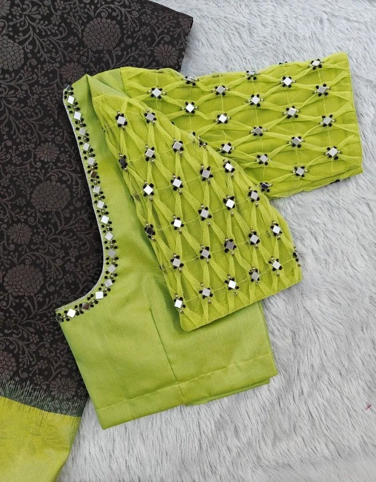 Luxury Pista Green Checks Maggam Work Blouse Designer Handcrafted Perfection at Best Price