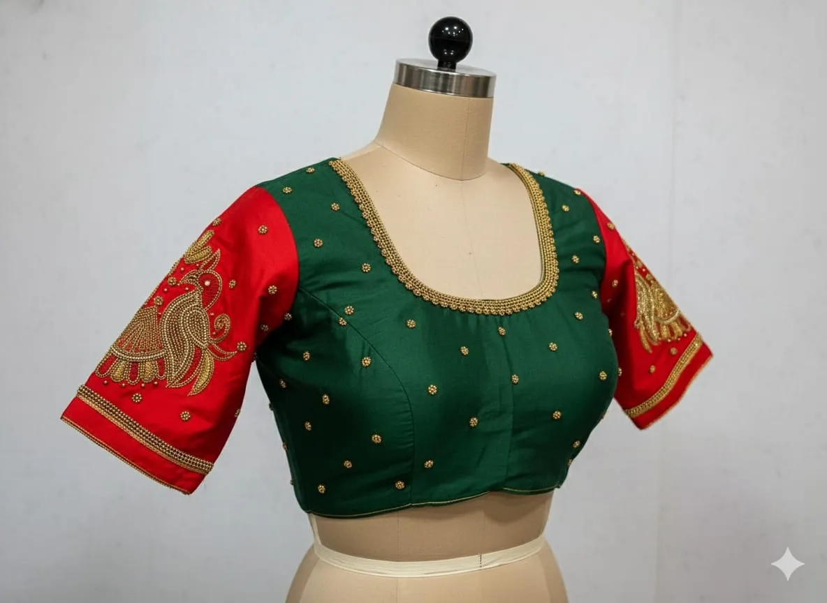 Why Choose Maggam Work Party Blouse Red-Green Combo Affordable Custom Size Options?