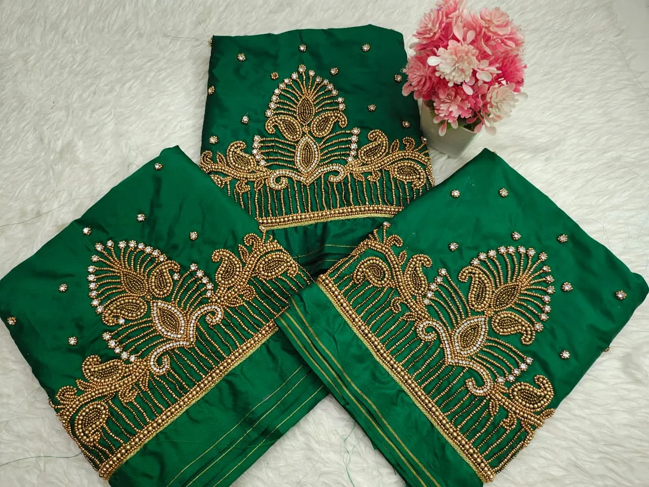 Bottle Green Aariwork Blouse Premium Craft at Budget Price Custom Size Available