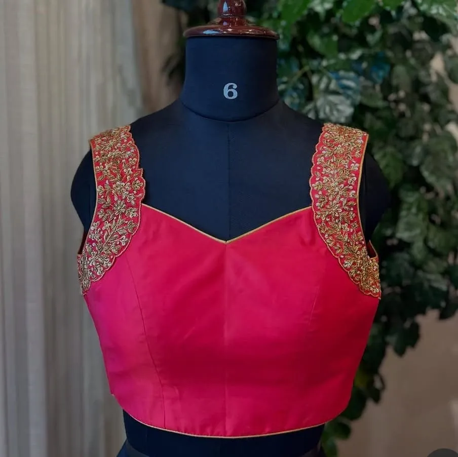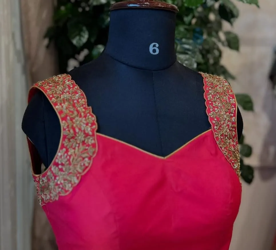 Reddish Pink Custom Maggam Work Blouse Sleeveless & Pocket-Friendly Elegance