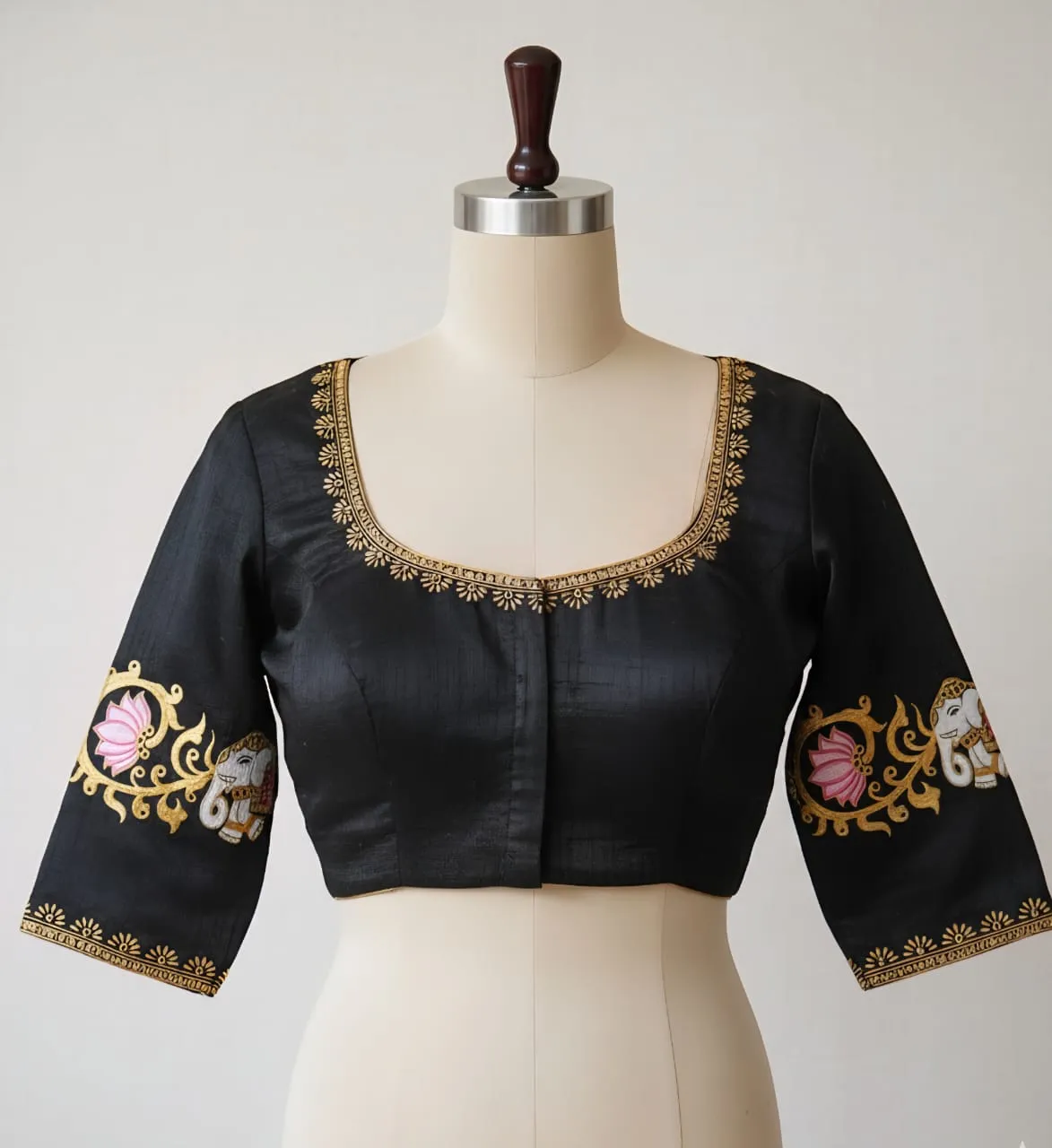 Why Choose Black Tanjore Elephant Maggam Work Blouse Custom-Made Elegance?